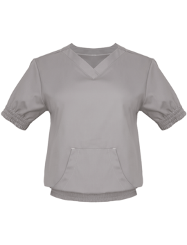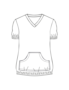Das Sweatshirt mit kurzen Ärmeln mit sportlichem Schnitt wurde im Einklang mit den neuesten Trends entworfen. Die Gummi-Strickbündchen an den Ärmelenden und an der Unterseite sorgen für einen perfekten Sitz. Eine große Känguru-Tasche auf der Vorderseite des Sweatshirts ermöglicht die Aufbewahrung von Kleinigkeiten. Der V-förmige Ausschnitt ist mit einer breiten Falte verziert. Die Farbe des Sweatshirts ist einfarbig, ohne kontrastierende Einsätze. Es ist ein unbestrittenes Muss in der modischen Garderobe der Medizinstudentin. Lässt sich perfekt mit der Jogginghose kombinieren.