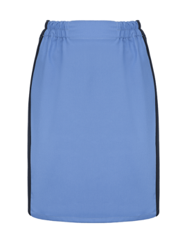 Die Seiten des Rocks sind aus einem marineblauen Stretchstoff genäht, der die Silhouette modelliert. Dank der im Rücken und an den Seiten eingenähten Gummizüge haben Sie ein angenehmes Tragegefühl und lassen sich leicht anziehen. Dieses Modell ist die perfekte Kombination aus Komfort und modischem Design. Der überlappende Schlitz auf der Vorderseite ist nicht nur ein dekoratives Detail, sondern auch ein praktisches Element, das die Bewegungsfreiheit beim Gehen erhöht.