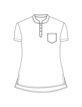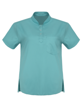 The short-sleeved shirt-style model with a loose, relaxed fit and a back dart that not only allows for unrestricted movement but also ensures you look absolutely fabulous. This scrub tunic accentuates your shoulders, highlighting your silhouette’s best features. The neckline is delicately finished with a small stand-up collar, and the front slit fastened with stainless steel snaps adds a touch of elegance and originality. Reaching mid-hips with a slightly extended back, this model boasts a unique character. The side slits offer flexibility, allowing you to tuck the front or back into your trousers for added style. Complete with a convenient pocket on the right chest, perfect for storing small essentials. It comes in a uniform colour with no contrasting inserts.