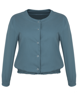This model boasts a trendy and sporty design, while elastic sleeves and bottom provide the perfect fit. Available in long sleeves variant only, with a length that slightly covers the waist, and a scoop neckline. The rust-resistant snap fasteners make it a breeze to put on. Two lower side seam pockets offer a practical storage solution for small essentials. With a consistent color throughout, this model exudes a polished and unified style. This scrub tunic masterfully blends style with comfort.