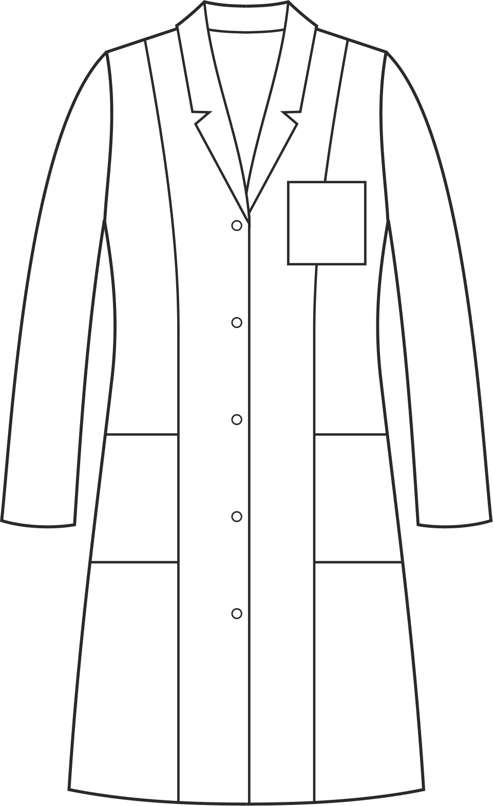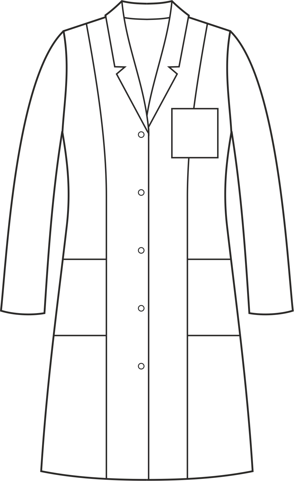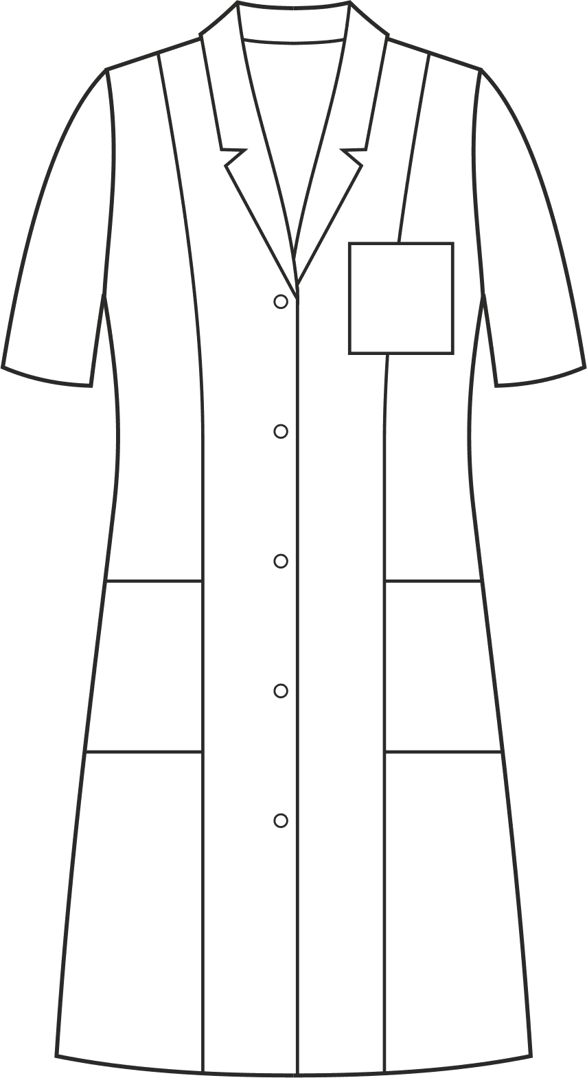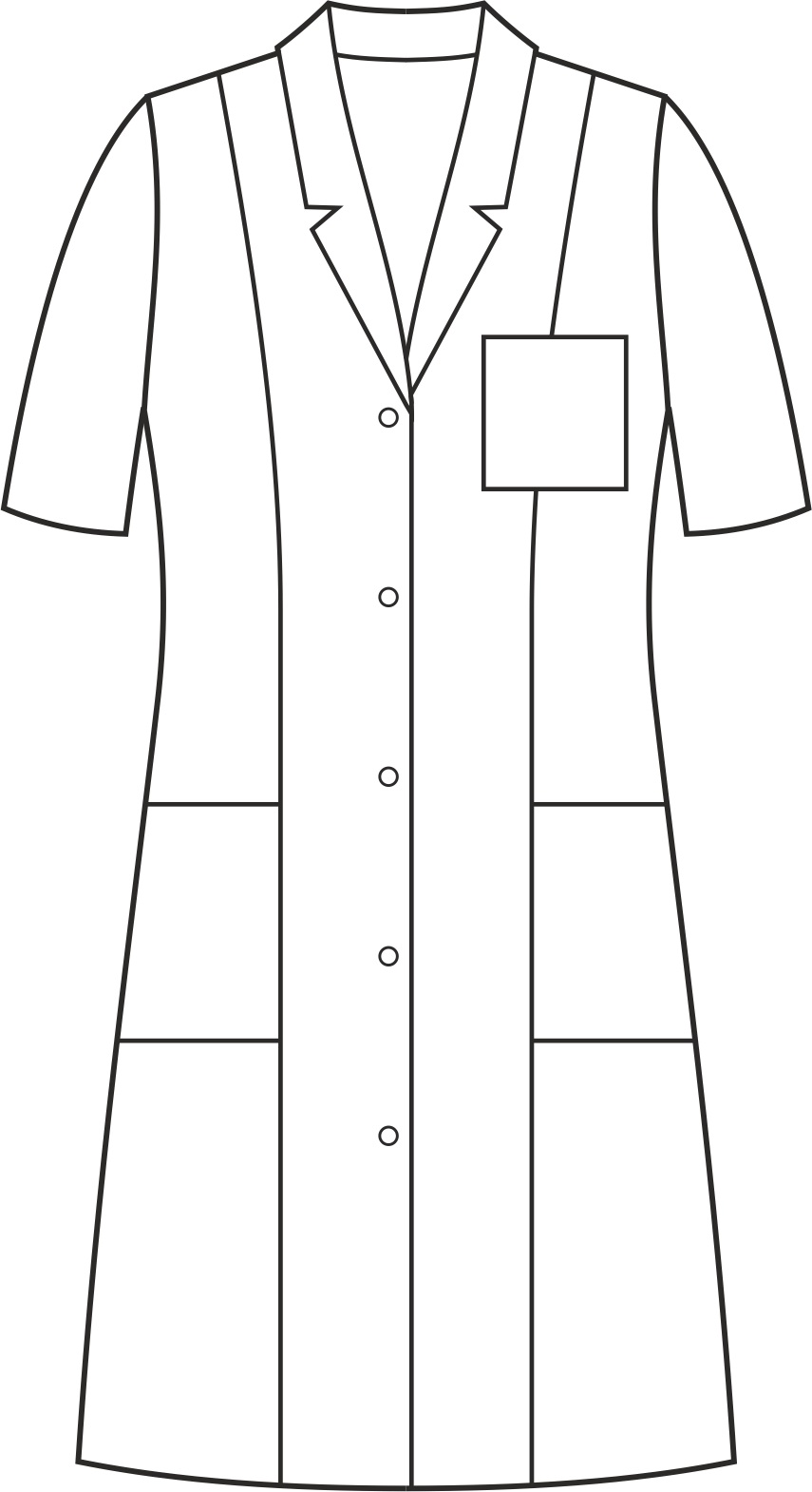 Fartuch jest dostępny zarówno z krótkim, jak i długim rękawem, dzięki czemu możesz dostosować go do swoich preferencji i potrzeb. Zapinany jest na trwałe, nierdzewne springi (napy). Wyposażony w dwie dolne symetrycznie naszyte kieszenie oraz jedną górną na lewej piersi, co zapewnia wystarczająco dużo miejsca na przechowywanie drobnych przedmiotów niezbędnych w pracy. Dekolt wykończony klasycznym kołnierzem i długość przed kolano nadaje fartuchowi elegancki wygląd. Zastosowanie dwóch pionowych cięć modelujących z przodu i z tyłu sprawia, że doskonale dopasowuje się do sylwetki, podkreślając jej kształty. Przecięty tył i rozporek z tyłu zapewniają swobodę ruchów i komfort podczas pracy. Fartuch występuje w jednolitym kolorze, bez kontrastowych wstawek, co nadaje mu profesjonalny wygląd i sprawia, że pasuje do różnych stylizacji.
