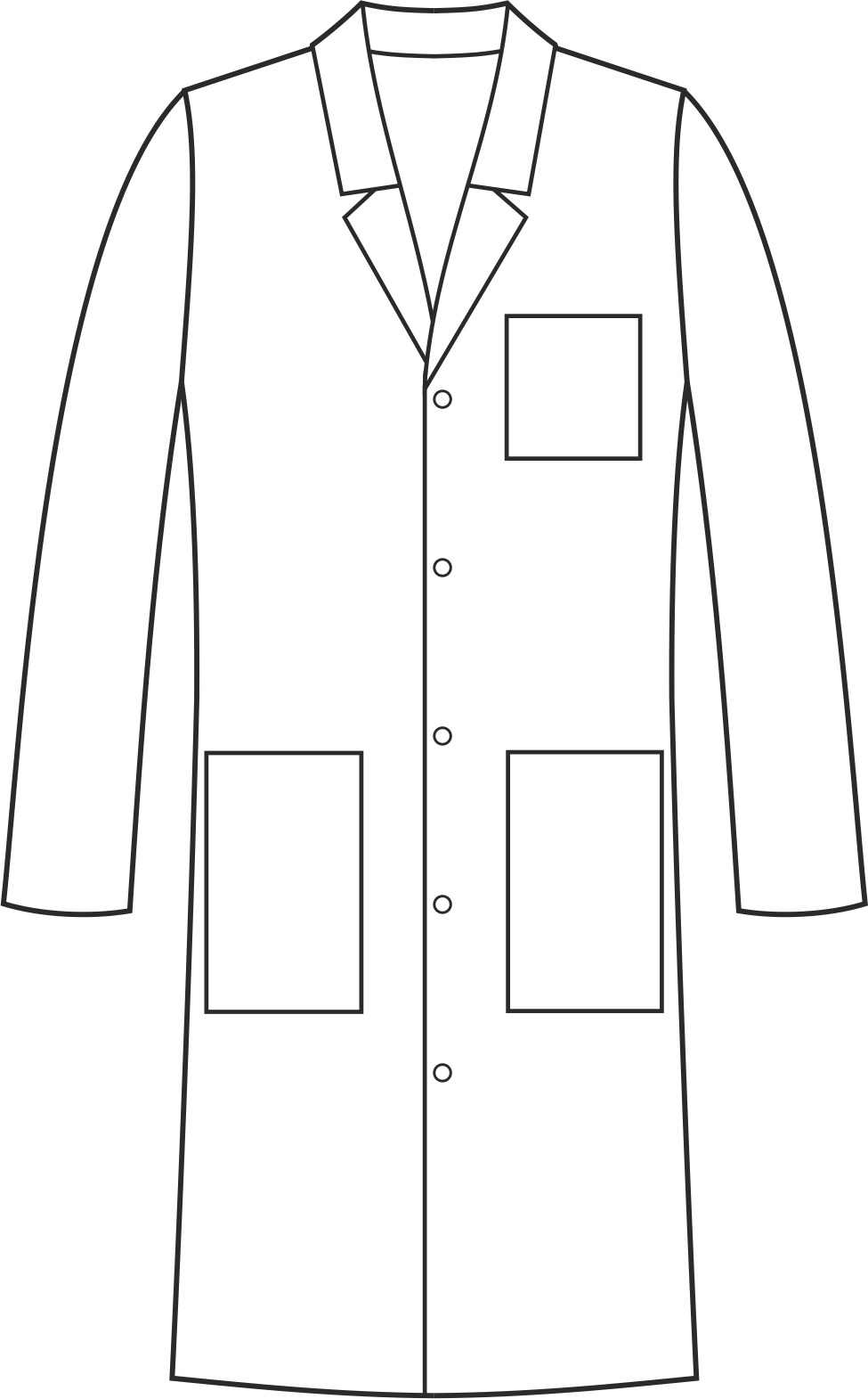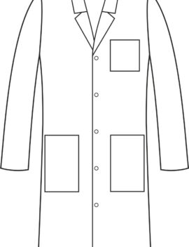 Fartuch z długim rękawem jest zapinany na nierdzewne springi (napy). Wyposażony jest w dwie dolne symetrycznie naszyte kieszenie, które umożliwiają przechowywanie niezbędnych przedmiotów w łatwo dostępnym miejscu. Dodatkowo, na lewej piersi znajduje się kieszeń. Długość fartucha sięga przed kolano, co zapewnia ochronę i swobodę ruchów podczas pracy. Dekolt wykończony klasycznym kołnierzem, co dodaje fartuchowi elegancji i profesjonalnego wyglądu. Kolor fartucha jest jednolity, co sprawia, że jest on uniwersalny. Prosty krój zapewnia wygodę i funkcjonalność.