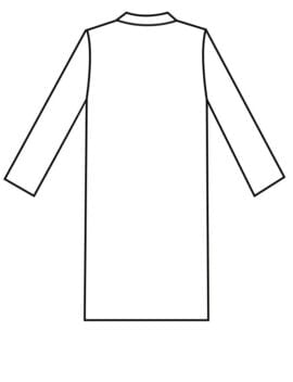 Fartuch z długim rękawem jest zapinany na nierdzewne springi (napy). Wyposażony jest w dwie dolne symetrycznie naszyte kieszenie, które umożliwiają przechowywanie niezbędnych przedmiotów w łatwo dostępnym miejscu. Dodatkowo, na lewej piersi znajduje się kieszeń. Długość fartucha sięga przed kolano, co zapewnia ochronę i swobodę ruchów podczas pracy. Dekolt wykończony klasycznym kołnierzem, co dodaje fartuchowi elegancji i profesjonalnego wyglądu. Kolor fartucha jest jednolity, co sprawia, że jest on uniwersalny. Prosty krój zapewnia wygodę i funkcjonalność.
