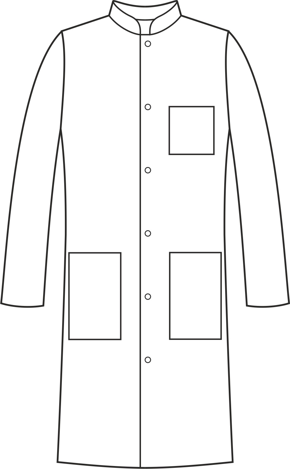Męski fartuch z długim rękawem, wygodny i praktyczny, zapewniający ochronę w miejscu pracy. Posiada charakterystyczne, kryte zapięcie na nierdzewne springi schowane pod plisą. Dzięki temu zapięcie jest jednocześnie i estetyczne, i trwałe. Wyposażony jest w dwie dolne symetrycznie naszyte kieszenie, które umożliwiają przechowywanie przyborów i innych niezbędnych przedmiotów w zasięgu ręki. Na lewej piersi znajduje się także jedna kieszeń, która może być używana do przechowywania mniejszych rzeczy. Fartuch ma długość przed kolano. Dekolt jest wykończony niewielką stójką, co dodaje fartuchowi nowoczesnego wyglądu. Kolor fartucha jest jednolity, bez kontrastowych wstawek, co sprawia, że jest on uniwersalny.