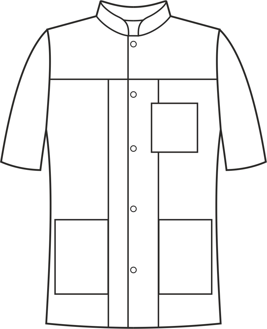 Marynarka wyróżnia się klasyczną stójką, która dodaje jej elegancji i formalności. Posiada dwa pionowe cięcia z przodu, podkreślające sylwetkę. Dodatkowo, na froncie znajduje się karczek, który dodaje marynarce wyjątkowego kroju. Marynarka została ozdobiona kolorowymi wstawkami przy kieszeniach, które nadają jej unikalny i modny akcent. Kombinacja klasycznego kroju i interesujących detali sprawia, że ten model jest niezwykle unikalny. Występuje w wersji z długim oraz krótkim rękawem. Wyposażona jest w dwie symetrycznie umieszczone dolne kieszenie oraz górną kieszeń usytuowaną na lewej piersi. Zapinana jest na nierdzewne springi (napy), które zapewniają łatwe i wygodne zapięcie. Długość marynarki jest tak zaprojektowana, aby lekko zakrywać biodra, co nadaje jej harmonijnego wyglądu. Ten model dostępny jest w jednolitym kolorze, bez kontrastowych wstawek, co podkreśla jej minimalistyczny i ponadczasowy charakter.