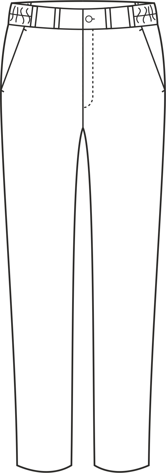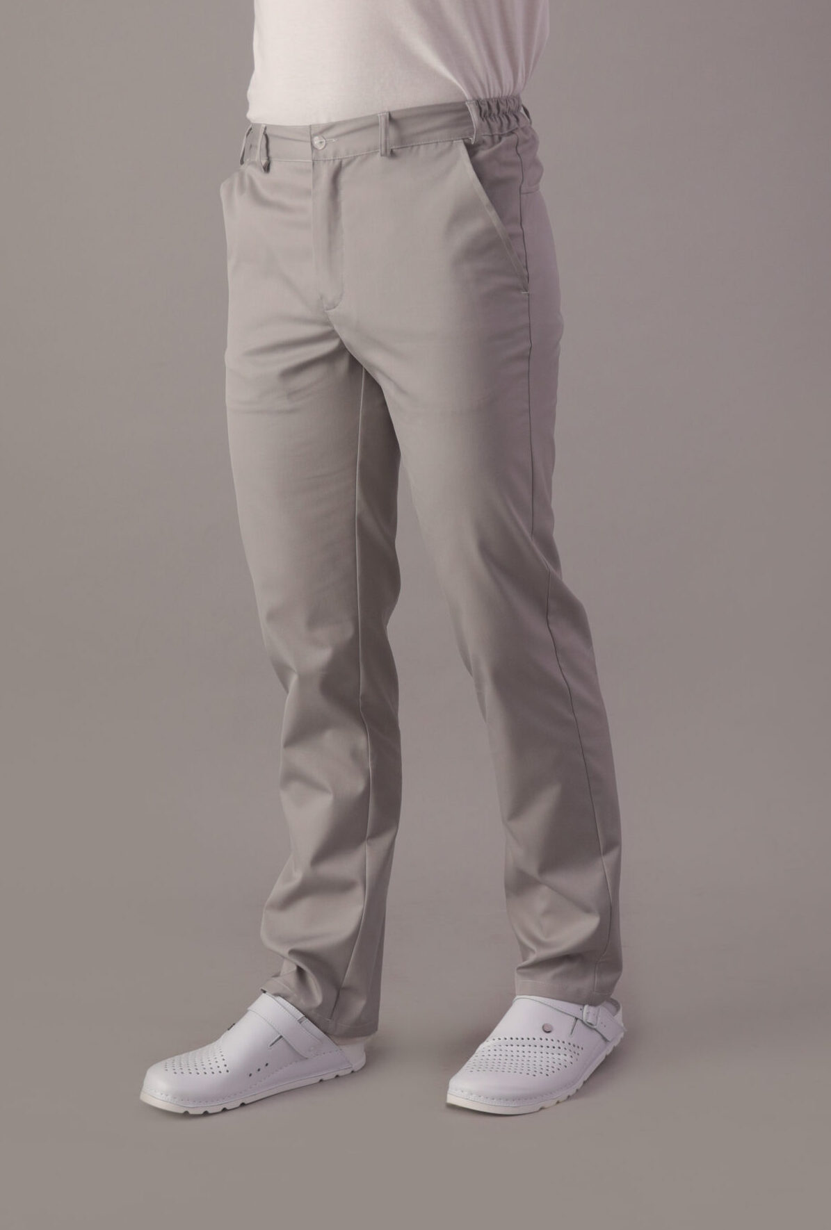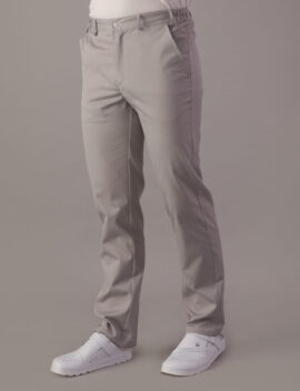 Najczęściej wybierane spodnie z uwagi na klasyczny krój. Spodnie mają lekko zwężane nogawki oraz wysoki stan, co dodaje im elegancji. Zapinanie z przodu na zamek i guzik ułatwia ich zakładanie. Dzięki gumom wszytym po bokach doskonale dopasowują się do sylwetki. Wyposażone są w dwie wpuszczane kieszenie biodrowe, umożliwiające przechowywanie drobnych przedmiotów w zasięgu ręki. Cały personel medyczny może nosić ten model spodni, gdyż pasuje on na każdy rodzaj sylwetki. Pozwala to na stworzenie profesjonalnego wizerunku placówki.