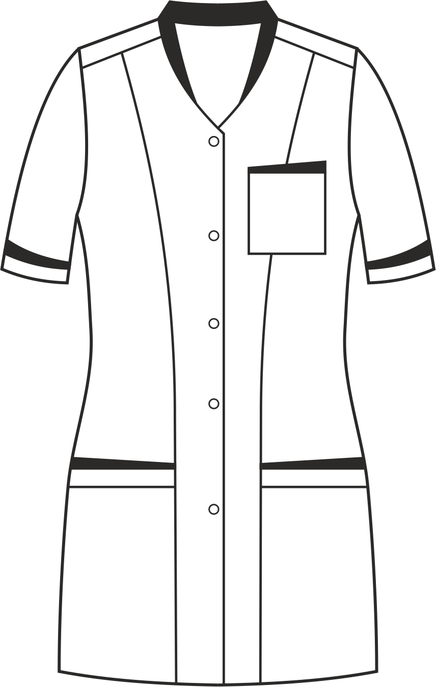 Model posiada praktyczne zapinanie na trwałe, nierdzewne springi (napy). Tunika jest dostępna w wersji z krótkim lub długim rękawem.