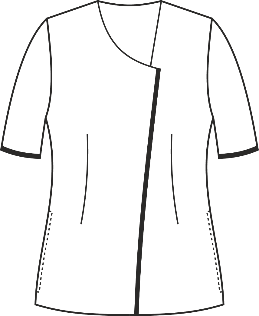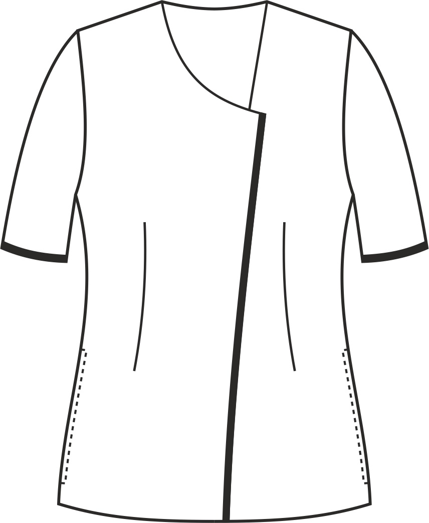wyróżnia się asymetrycznym zapięciem i dekoltem