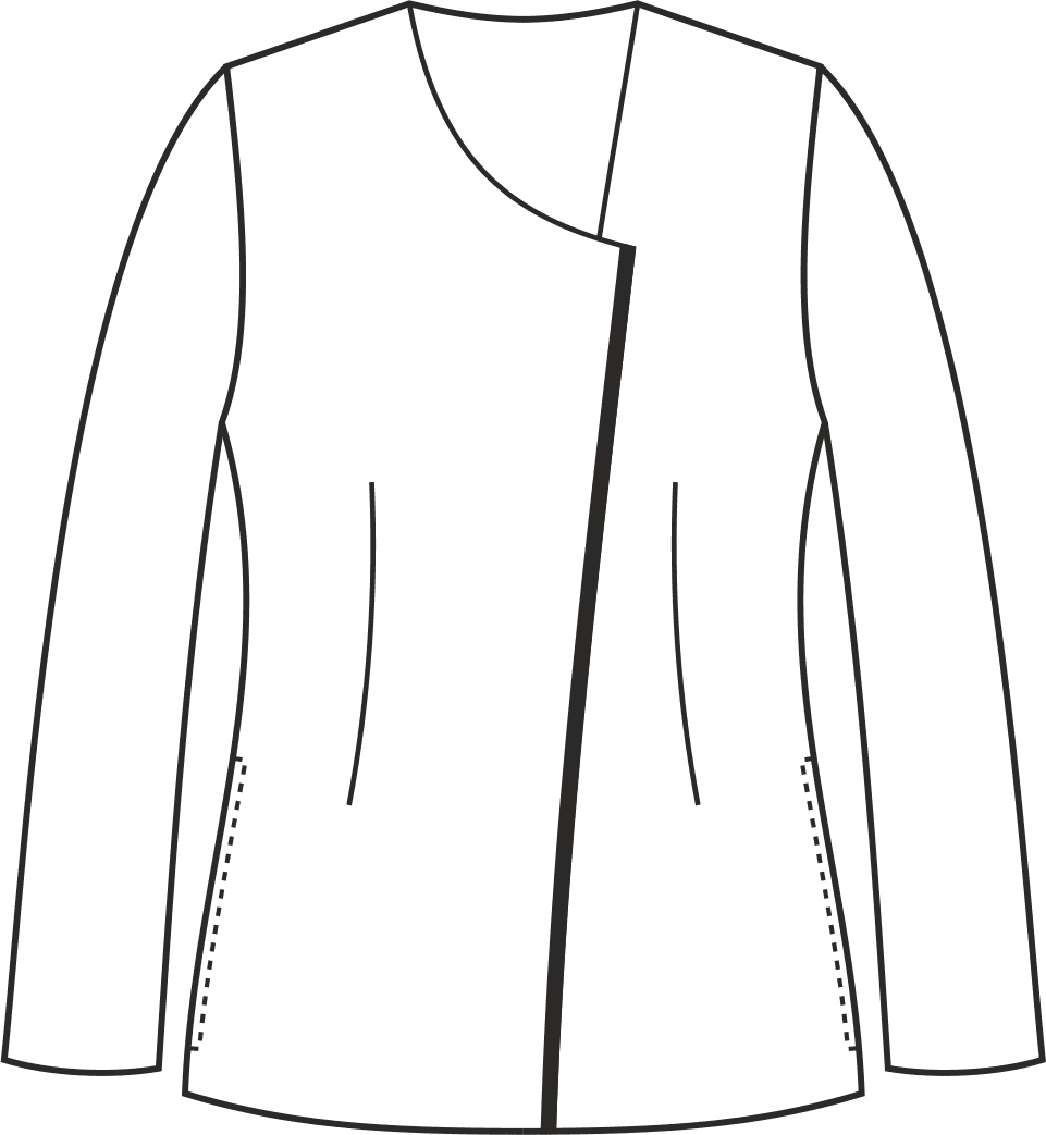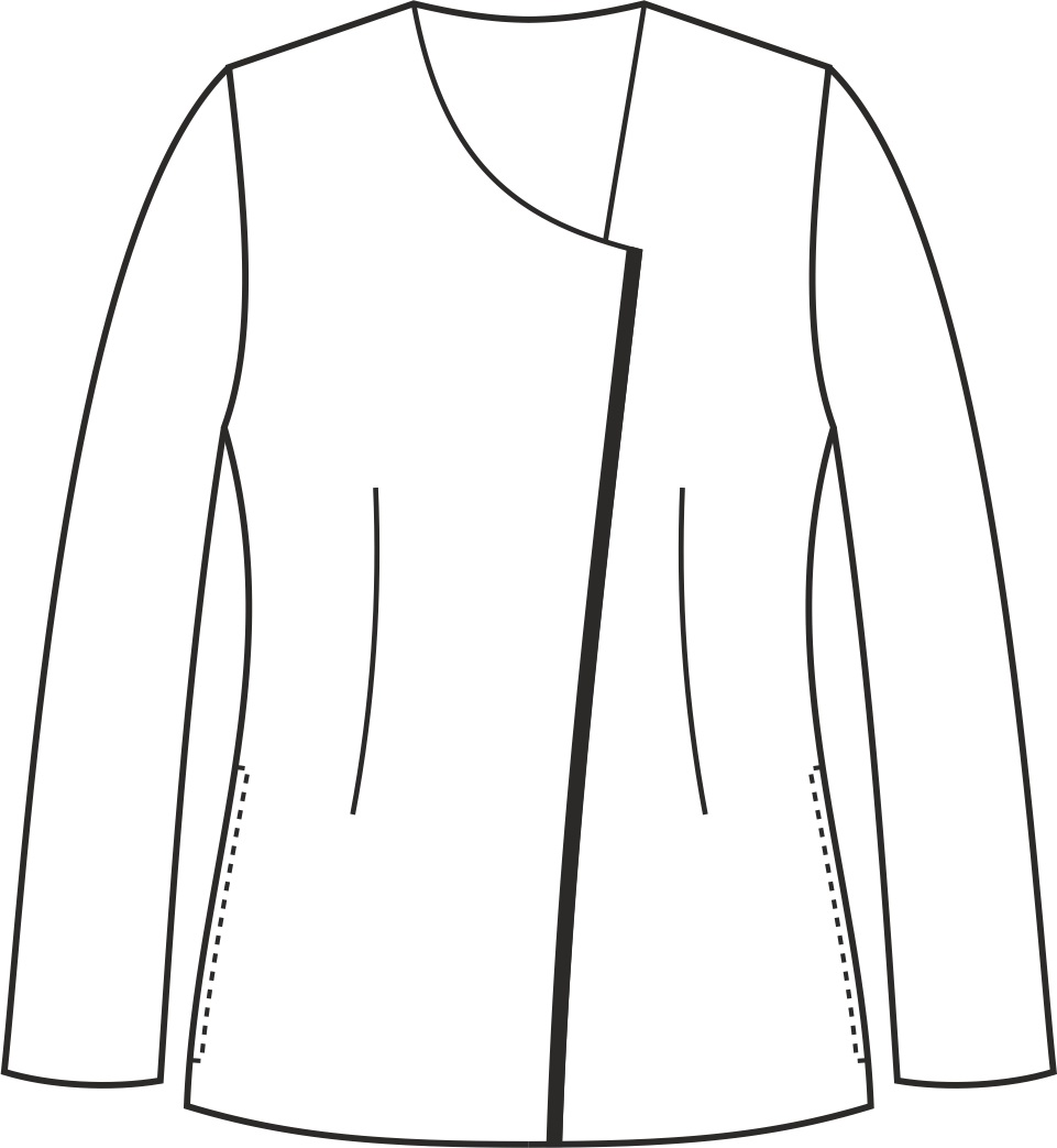 Schowane pod plisą napy to jeden z kluczowych elementów tego żakietu. Dekolt w asymetryczny serek nadaje żakietowi unikalnego charakteru. Taliowany krój oraz dodatkowe zaszewki modelujące z przodu i z tyłu podkreślają sylwetkę oraz dodają stylowego wyglądu. Żakiet posiada dwie wpuszczane dolne kieszenie, które są praktyczne i dyskretne. Długość żakietu lekko zakrywa biodra. Kolor żakietu jest jednolity, co sprawia, że wygląda on elegancko i nowocześnie. Można go zamówić w wersji z krótkim lub długim rękawem.